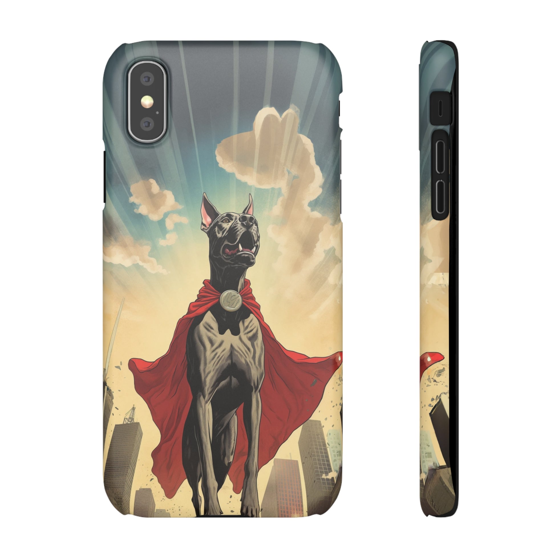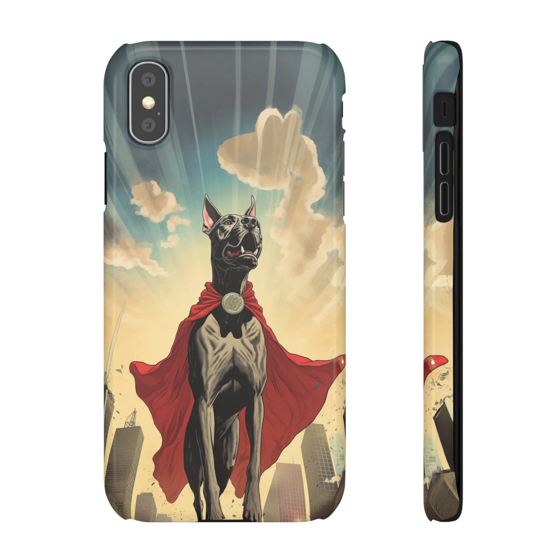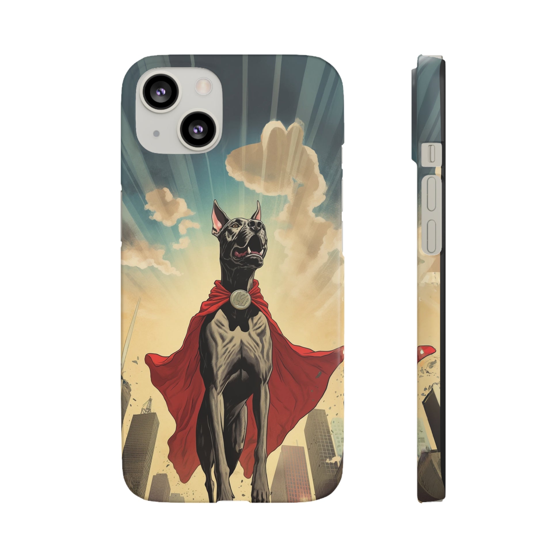 Unleash the power of your style with our extraordinary cartoon superhero Great Dane design! Introducing the Mighty Guardian, a captivating illustration that combines the majestic presence of a Great Dane with the thrill of a superhero. This unique and eye-catching design showcases a courageous Great Dane, adorned in a colorful superhero costume, ready to protect your device with unwavering might. Crafted with precision and attention to detail, this artful depiction will add a touch of charm and playfulness to your everyday life. Made from durable materials, our protective case offers reliable defense against bumps, scratches, and everyday wear and tear. Embrace your love for superheroes and embrace the boundless energy of your Great Dane companion with our Mighty Guardian cartoon superhero design!