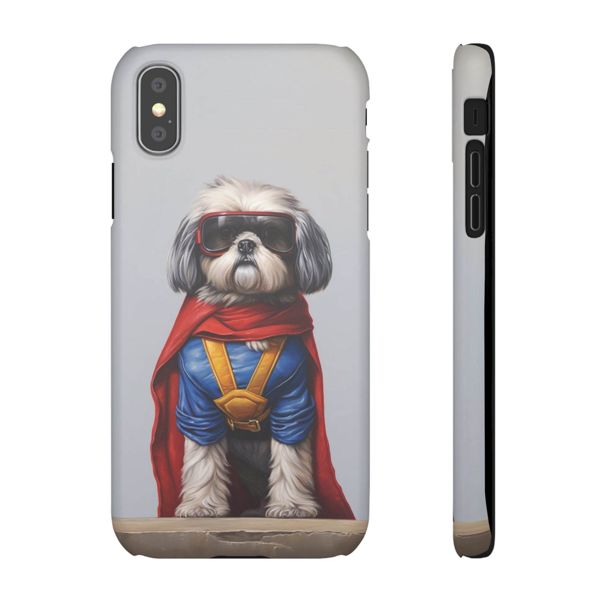 Unleash the power of cuteness with our Superhero Shih Tzu studio portrait! This unique artwork features an adorable Shih Tzu transformed into a mighty superhero, ready to save the day. With vibrant colors and intricate details, this design is a true testament to the charm and charisma of these lovable furry friends. Made with high-quality materials, our phone case showcases this fantastic artwork while providing reliable protection for your device. Stand out from the crowd and let your inner superhero shine with our Superhero Shih Tzu studio portrait phone case! Perfect for Shih Tzu enthusiasts and superhero fans alike, it's a must-have accessory that combines style and functionality in one irresistible package.